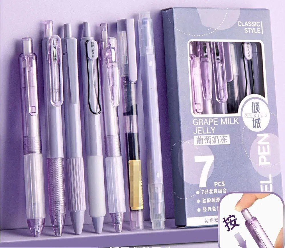 1 روانویس-1 هایلایتر-1نوک نمدی و 5 خودکار با اندازه نوک متفاوت ژله ای و غیر ژله ای